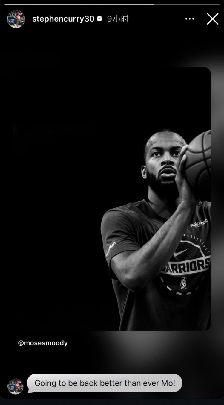 库里转发鼓励穆迪:你将在回归后比以往更强大!